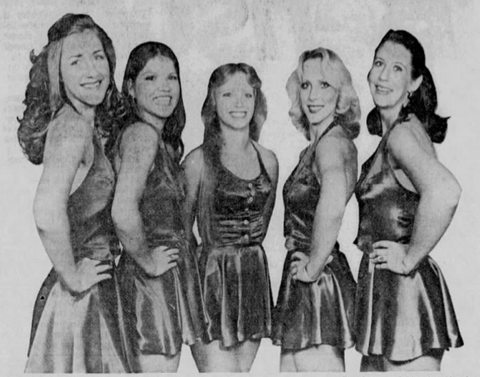 Shreveport Steamer cheerleaders (l to r) Linda Effinger, Wanda Pickering, Cindy Rowe, Iris Stephens, Terri Pollard |